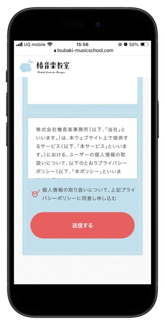 以上で椿音楽教室新宿エリアの無料体験レッスンの申し込み完了です!